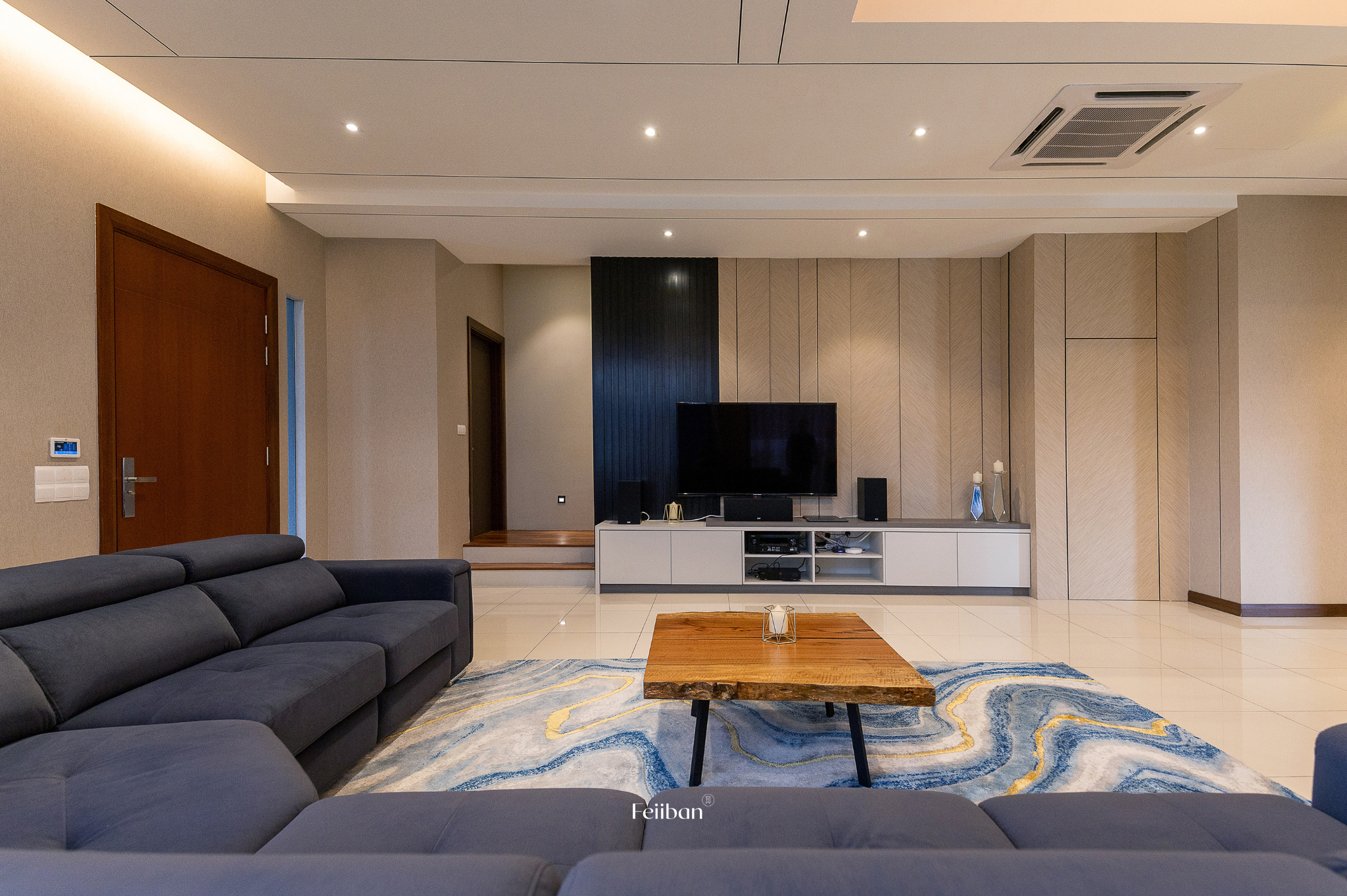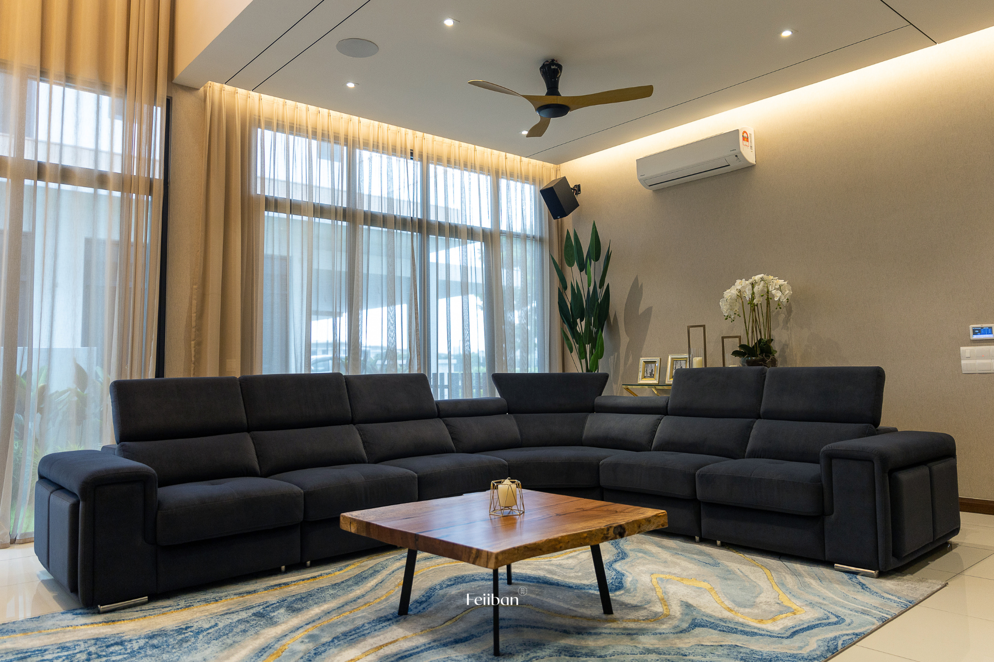 This residential interior design project seeks to create harmonious spaces that blend modern elegance with warmth and comfort. The living area will exude modern elegance with blue accents, while the kitchen area will offer warmth and a welcoming atmosphere through the use of wood tones. The master bedroom will be designed for elegance and sophistication, the dining area will radiate the vibes of home, and the courtyard will embrace an eco-friendly and cozy ambiance. The overall result will be a contemporary residence that seamlessly combines style, comfort, and a sense of connection with nature.