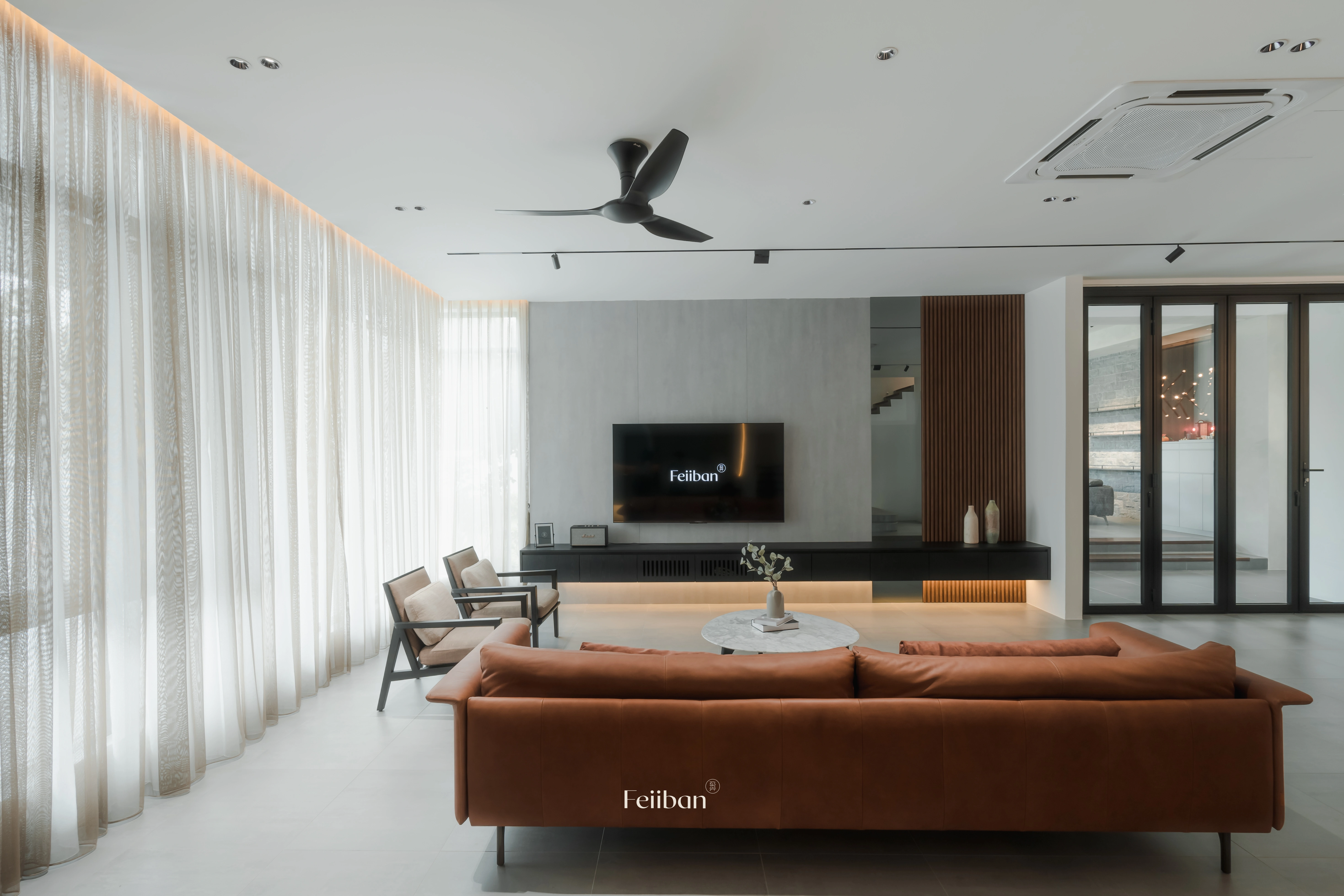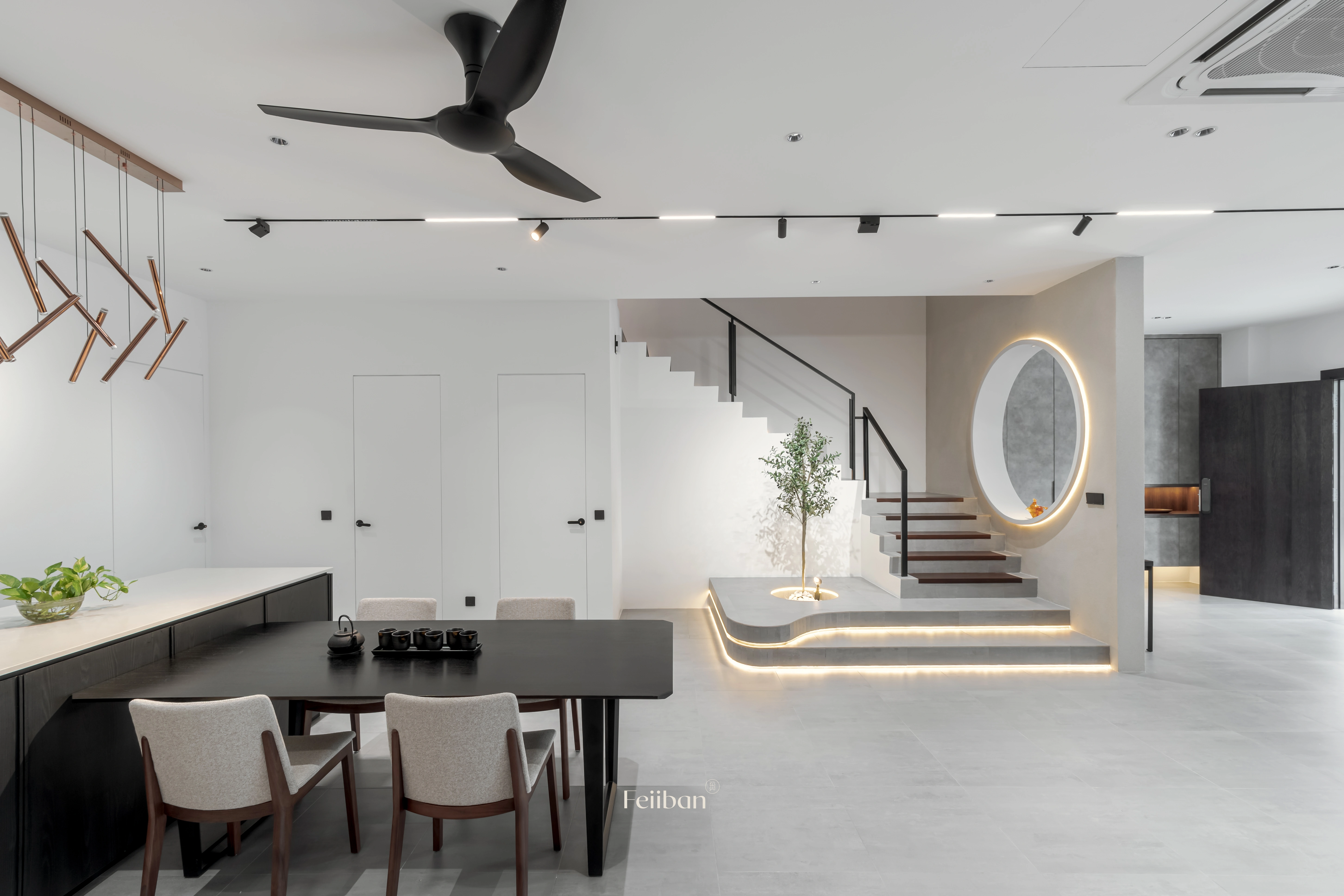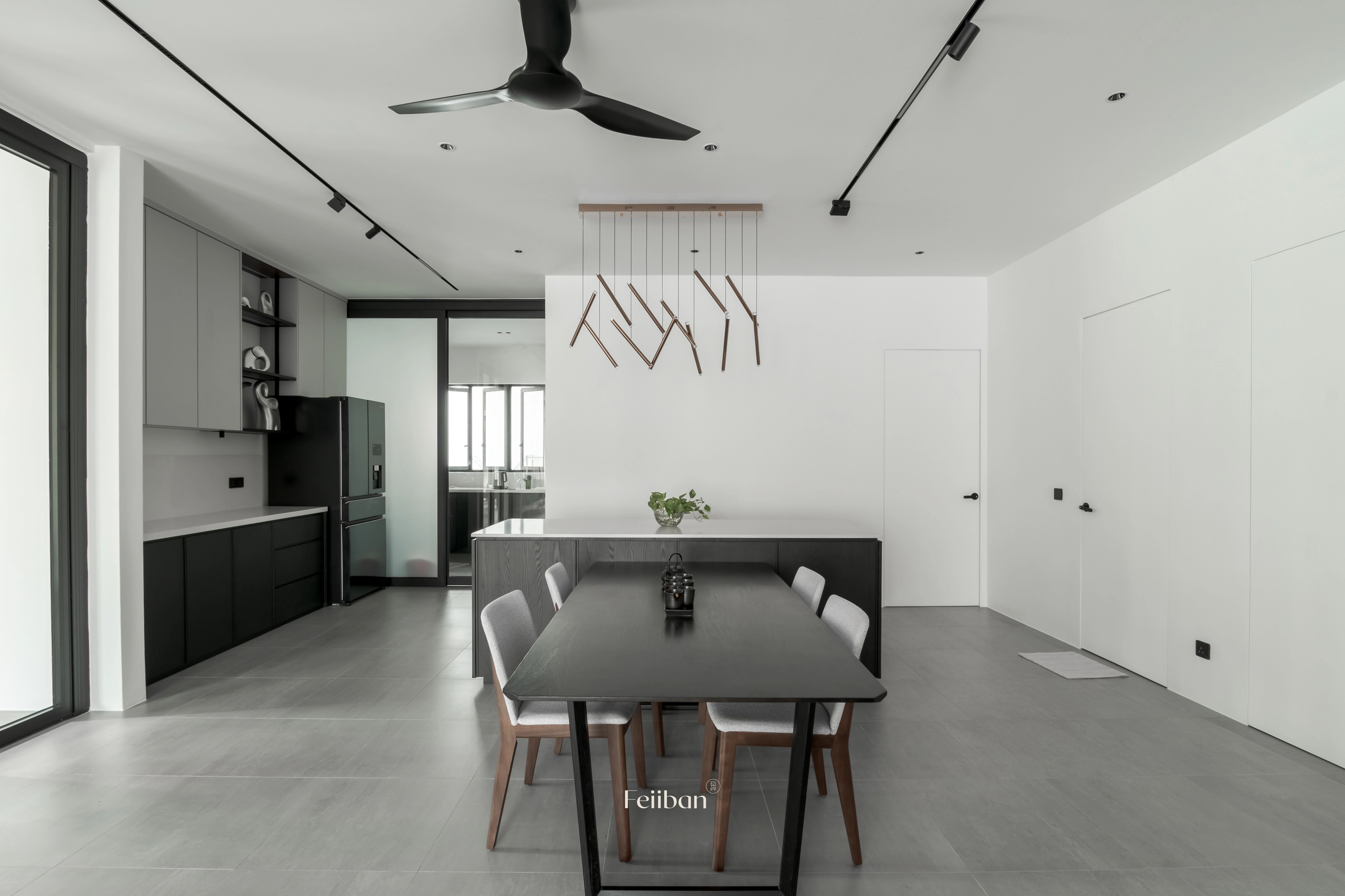 Minimalist modern style primarily uses black, white, and gray as the main color scheme, complemented by small amounts of color and wood tones to create a spatial aesthetic, subdued colors and linear design create a comfortable visual experience.