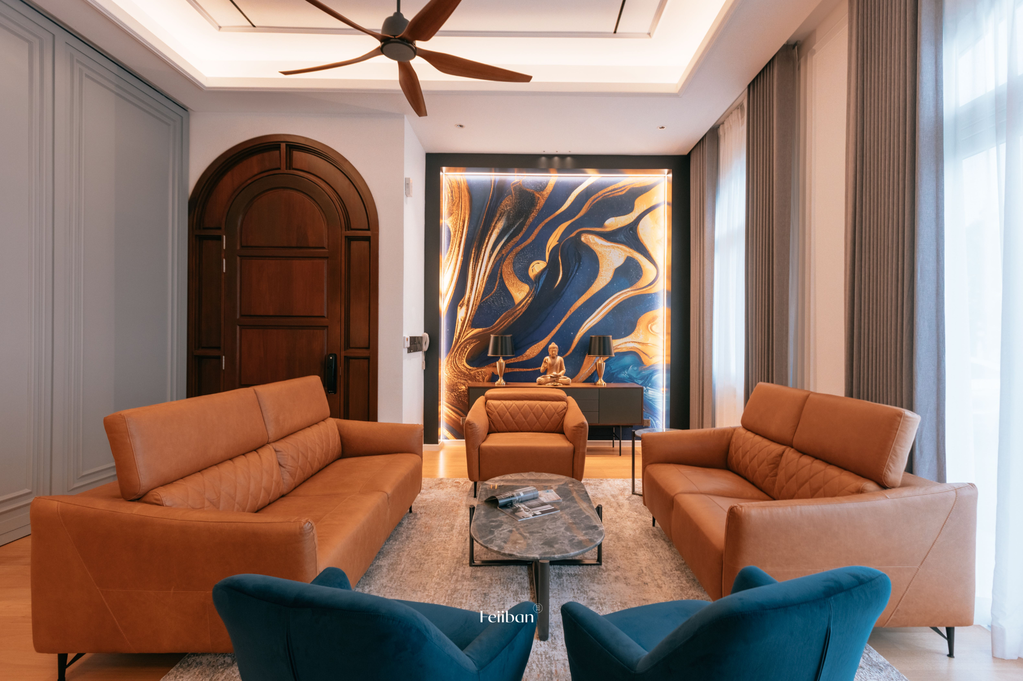 The outdoor space boasts a lush garden and a veranda where you can relax and enjoy the refreshing breeze. This classic modern bungalow is a perfect blend of timeless elegance and contemporary aesthetics.