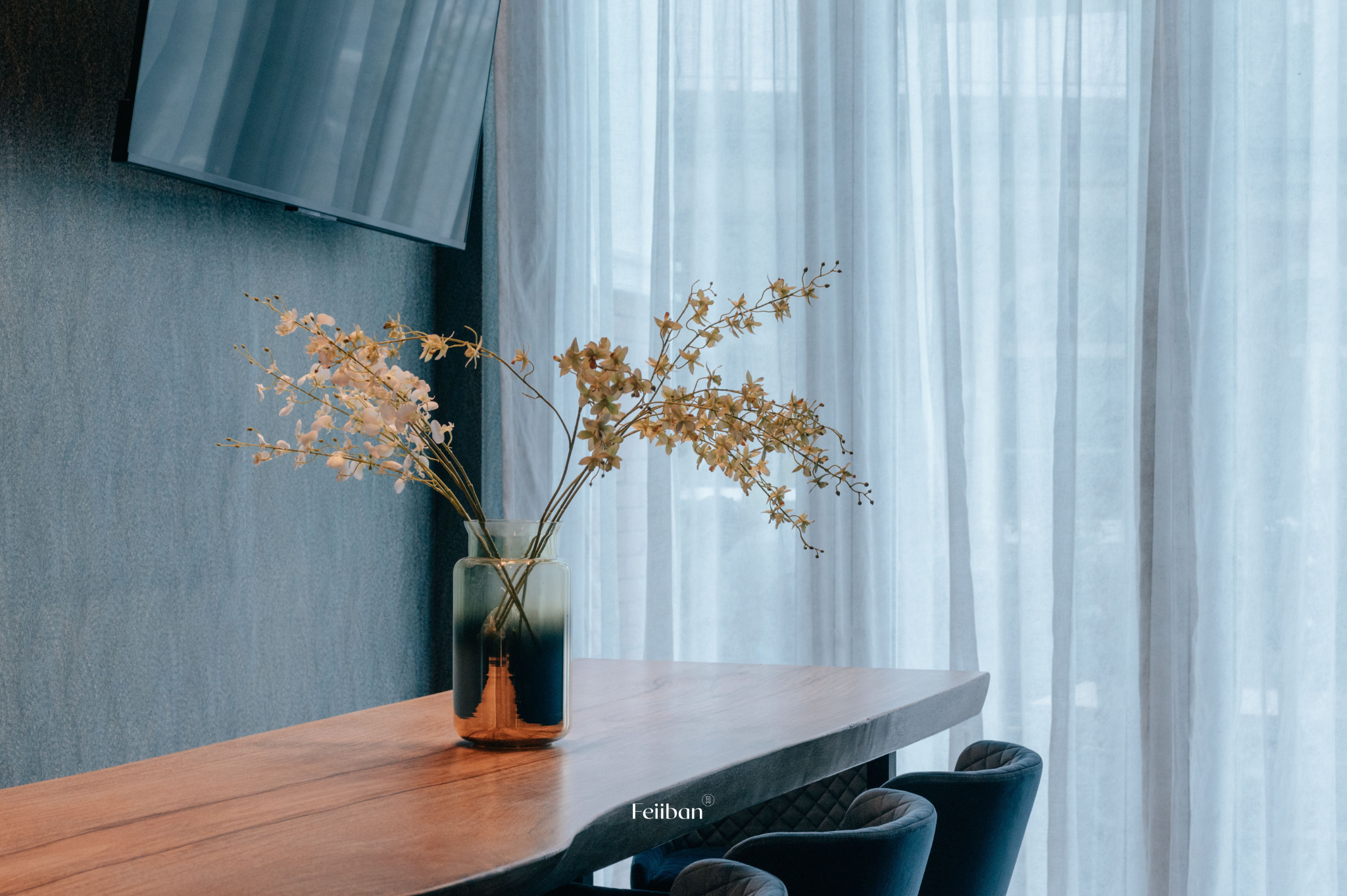 When you step inside, you'll find a perfect combination of classic charm and modern sophistication. The space features a captivating Oxford Blue as the main color scheme for the interior and inviting moody timber flooring creates a calming and peaceful atmosphere.